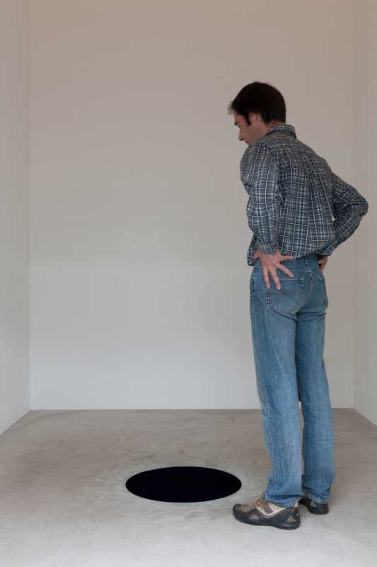 Midden op de vloer van een van de zgn. 'wolhokken' in De Pont ligt een zwarte cirkel van zo’n 60 cm in doorsnee die onmiddellijk de aandacht trekt. Kijken we naar een plat vlak of naar een duistere diepte? De twijfel over hetgeen we waarnemen, maakt dat we het werk met een zekere voorzichtigheid benaderen. Een verkeerde stap zou immers een val kunnen veroorzaken. De visuele ervaring van het werk conditioneert ons gedrag en onze beweging in de kleine ruimte van het wolhok. Alleen met onze ogen kunnen we proberen het werk af te tasten.Langzaam groeit het besef dat we naar een zwart gat kijken. De platte cirkel is in werkelijkheid een donkere, bolvormige holte onder de vloer. Zo donker dat we geen perspectief en ruimte meer kunnen waarnemen. Anish Kapoor heeft dit effect bereikt door het gat vanbinnen helemaal met een donkerblauw pigment te bestrijken. Het pure pigment absorbeert al het licht en zo kunnen we geen diepte meer zien. Wat rest is het illusoire beeld van een platte, zwarte cirkel. Descent into Limbo betekent letterlijk: afdaling in het ongewisse. Op treffende wijze geeft de kunstenaar hiermee aan dat het avontuur in de ervaring van zijn werk vooral is gelegen in het kijken zelf. Door zijn werk worden we visueel op het verkeerde been gezet en worden we ons ervan bewust dat we onze ogen niet altijd kunnen geloven.