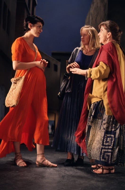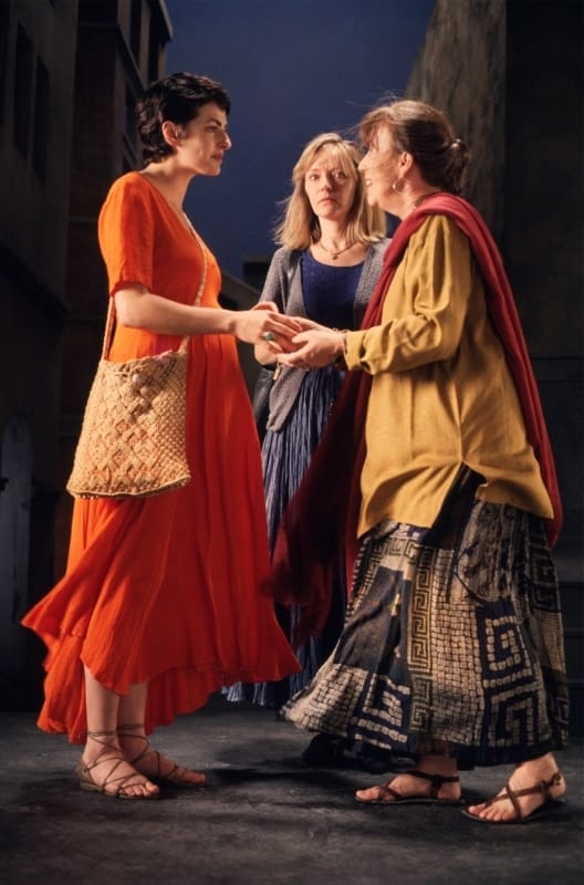 Hun gesprek wordt plotseling onderbroken wanneer een derde vrouw in beeld verschijnt. Zij is ook jong en gaat gekleed in een fel oranje-rode jurk. Evenals de oudere vrouw draagt zij sandalen. Haar figuur toont dat zij zwanger is. Op haar onverwachte komst volgt een hartelijke begroeting met de oudere vrouw. Zij omhelzen elkaar en de liefdevolle blikken en gebaren getuigen van een bijzondere band tussen deze twee personen. Hun gesprek blijft onverstaanbaar, slechts een gefluister is hoorbaar. Het aanzwellende geluid van de opstekende wind, de wapperende kleding en de intensiteit van de begroeting maken dit moment echter tot het dramatische hoogtepunt van de video. Ook de twee jonge vrouwen begroeten elkaar vervolgens en de conversatie wordt door de drie vrouwen voortgezet. Een zekere rust keert weer en na enige tijd verstommen beeld en geluid en is de video ten einde.