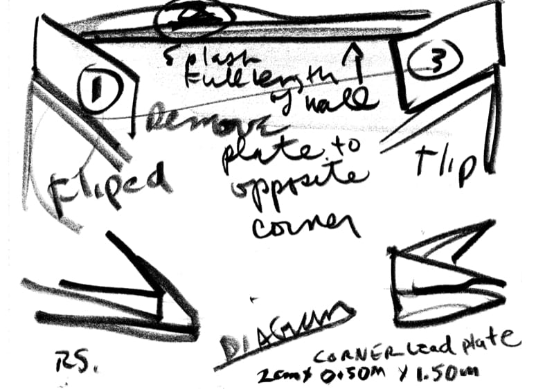 - grafiet op papier 2 werktekeningen voor Gutter Splash Two Corner Cast