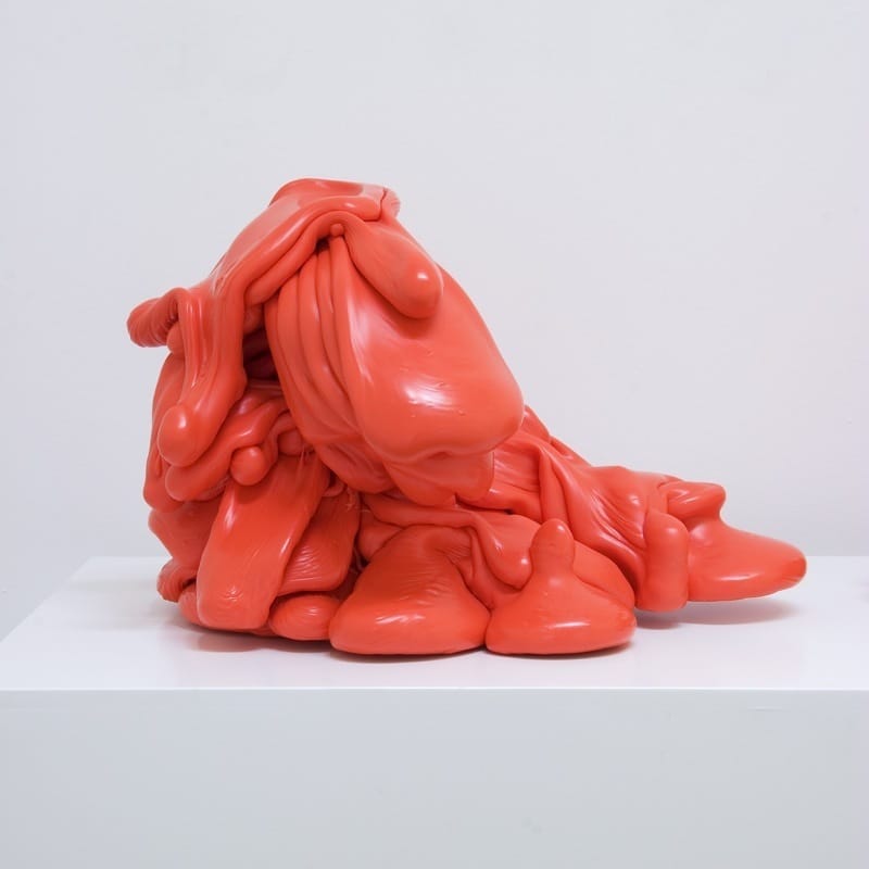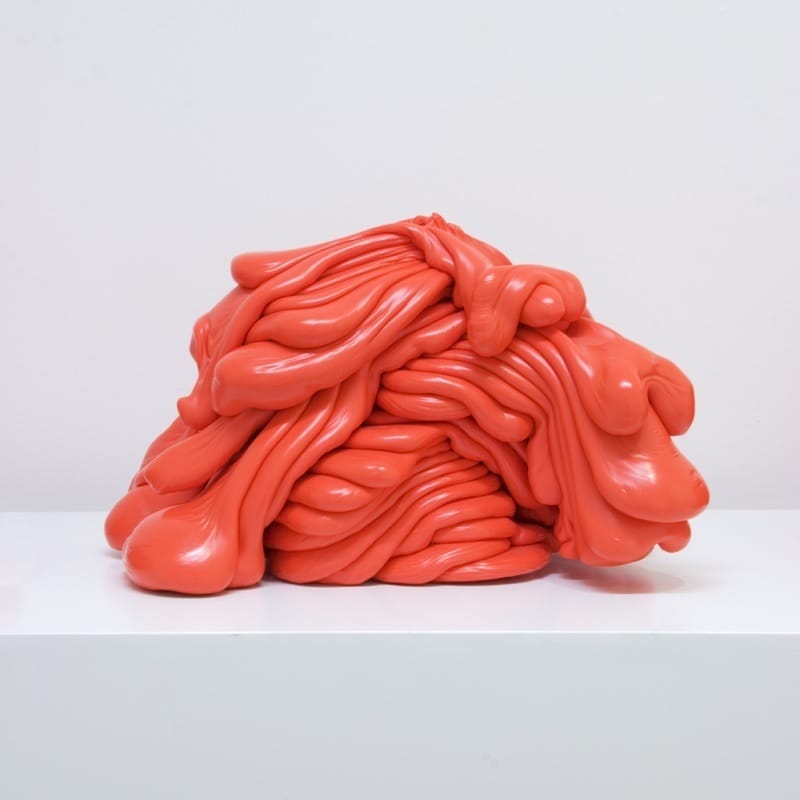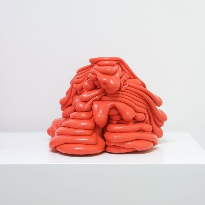 Deze omkering van verwachtingen speelt eveneens een belangrijke rol bij een andere groep werken; machines die automatisch kunstwerken produceren. De gedachte dat machines in staat zouden zijn om ‘authentieke’ kunstwerken te maken waarbij het unieke handschrift van de kunstenaar vervangen wordt door de sporen van een mechanische handeling, is zelfs in het huidige industriële tijdperk nog altijd ongewoon. Paine’s machines doen vermoeden dat hij authenticiteit en originaliteit als criteria voor een kunstwerk op een radicale manier afwijst. Toch is dit een te beperkte interpretatie van Paines werk. Juist binnen de tradities van de schilderkunst is zijn werk te beschouwen als een uitgesproken en persoonlijke stellingname. De ‘mechanische reproduceerbaarheid’ –door velen lang beschouwd als het begin van het einde van de kunst- leidt bij Roxy Paine niet tot een uniforme herhaling maar tot een gevarieerde productie van afzonderlijke, unieke kunstwerken. Tegelijk zijn de machines zelf met hun besturingsprogramma en ‘productielijn’ als zelfstandige en door de eigen handen van de kunstenaar vervaardigde kunstwerken te beschouwen. In 1996 construeerde Paine zijn eerste Paint Dipper waarmee het opgespannen schilderslinnen volautomatisch in een bak met verf werd ondergedompeld. De PMU (Painting Manufacture Unit),1999-2000, is complexer en werkt met een computergestuurde verfpomp. De witte verf wordt in tientallen kortdurende sessies laag voor laag op een opgehangen doek gepompt, waarna het in vloeiende vormen opdroogt tot een grillig monochroom landschap. In deze machinale productie zijn toch alle resultaten onderling verschillend. Dit is ook het geval bij de andere door Paine gefabriceerde machines. SCUMAC (sculpture-making machine, 2001) produceert beelden letterlijk aan de lopende band. De Scumac-beelden bestaan uit polyethyleen dat in vloeibare vorm wordt ‘uitgepompt’. Elk beeld is opgebouwd uit meerdere lagen die in amorfe vormen zijn gestold. Deze vormen zijn onvoorspelbaar zodat uiteindelijk geen twee beelden gelijk zijn. De kleur van de beelden verschilt voor elke locatie waar ze gemaakt worden.