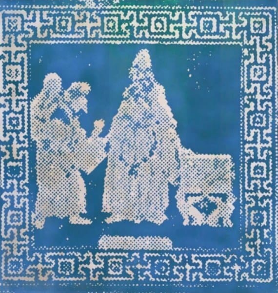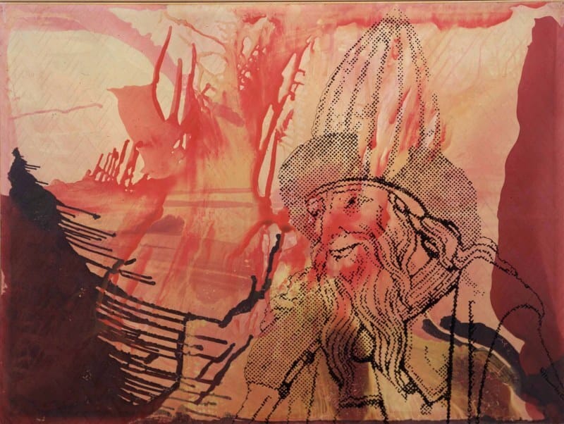 Opvallend is de manier waarop Polke het oorspronkelijke beeld heeft bewerkt en de oude mozaïekvloer als uitgangspunt nam voor een eigen versie waarin de mystieke boodschap volledig aan het beeld ondergeschikt lijkt te zijn gemaakt. Op het kleinste doek is de voorstelling in haar geheel overgenomen maar zijn de figuren geabstraheerd weergegeven in een grove rastertechniek die doet denken aan de reproducties in kranten en goedkoop drukwerk. Polke gebruikte het alledaagse karakter ervan vaak om een ironisch commentaar te geven op de pretenties van de moderne kunst waarin begrippen als ‘authenticiteit’ en ‘inspiratie’ vaak centraal staan.