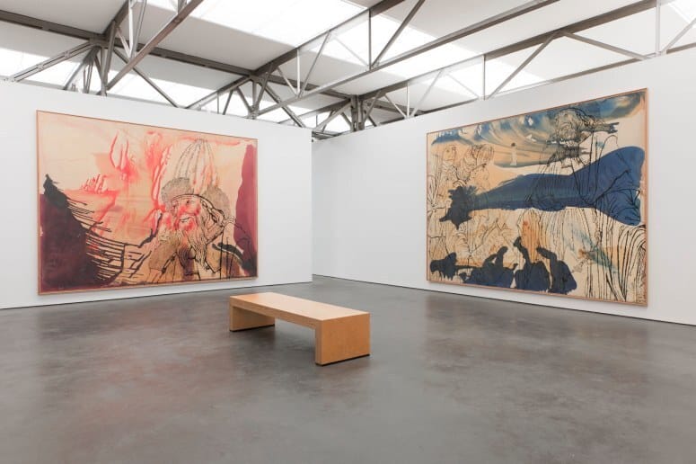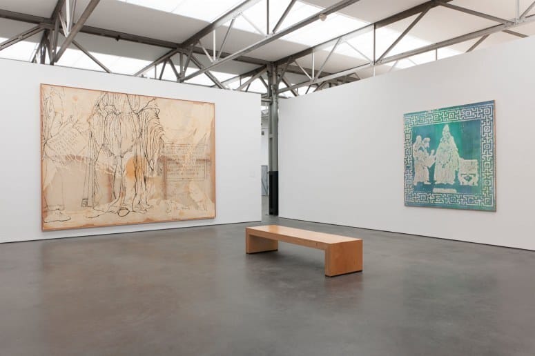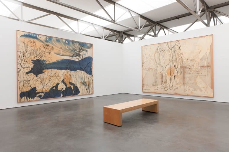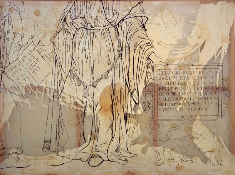 Het monumentale vierdelige werk Hermes Trismegistos vult de wanden van een volledige tentoonstellingszaal. De schilderijen die rondom de bezoeker hangen, vormen ondanks hun onderlinge verschillen één geheel. Drie enorme doeken tonen sterk uitvergrote fragmenten van de voorstelling die op het kleinste schilderij in zijn geheel te zien is: de mythische Hermes Trismegistos in gezelschap van twee personen die hem vol achting benaderen en van hem een geschrift in ontvangst nemen. Op deze in een vaag rastersilhouet weergegeven afbeelding wordt in de drie grote schilderijen als het ware gedetailleerd ‘ingezoomd’.